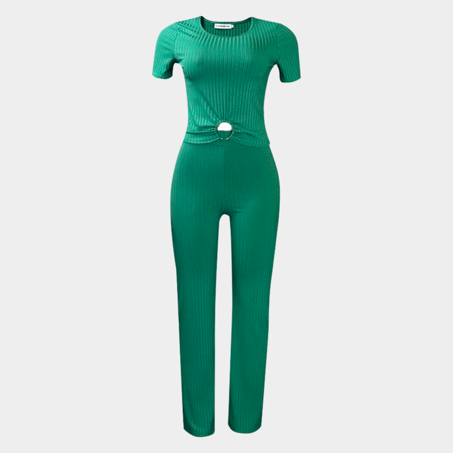 Designed to highlight your natural confidence, the Ribbed Two Piece Set with Ring Waist Detail will follow your curves with precision while keeping your look clean and controlled. The ribbed texture and centered ring detail will naturally draw attention to your waist, creating a silhouette that feels intentional and balanced.