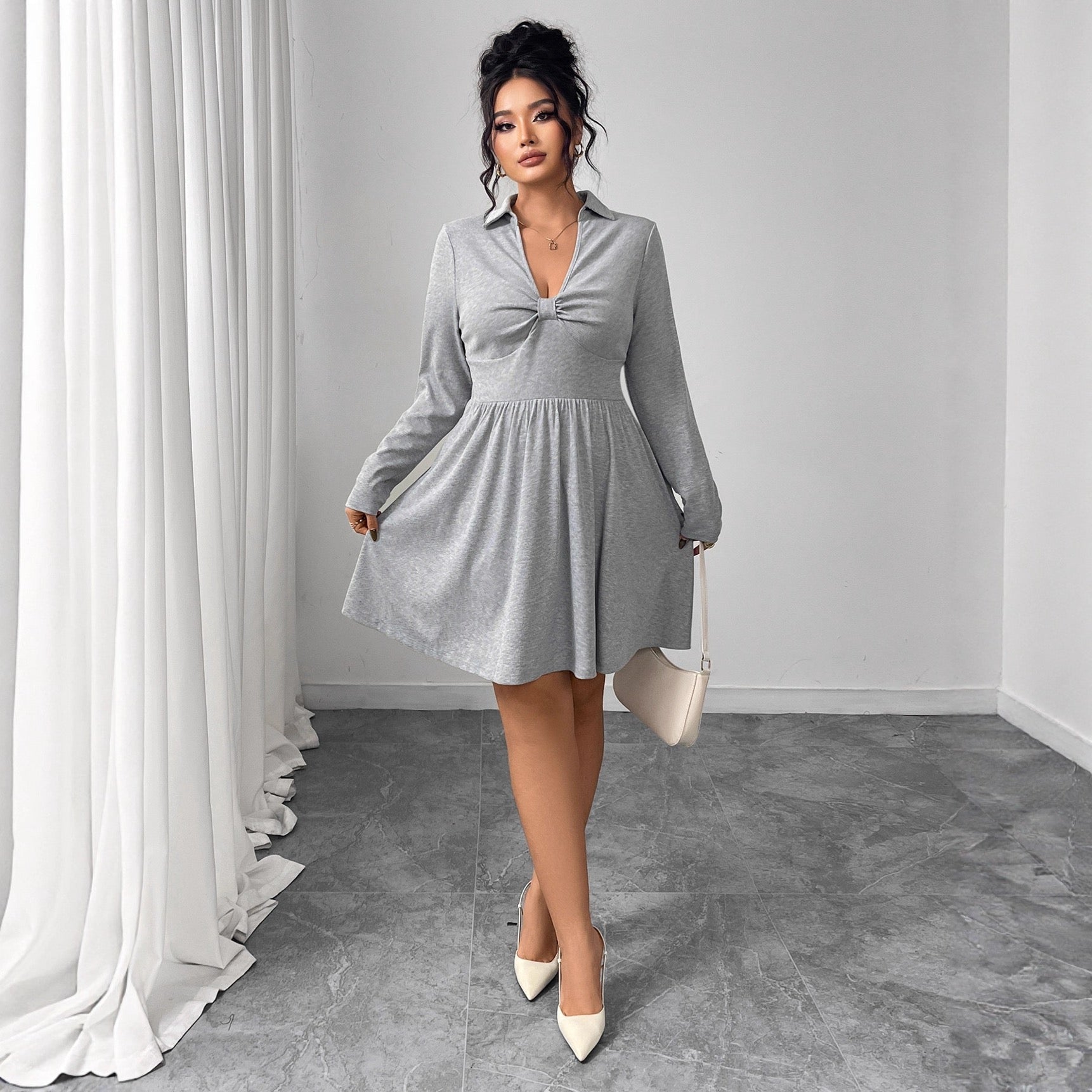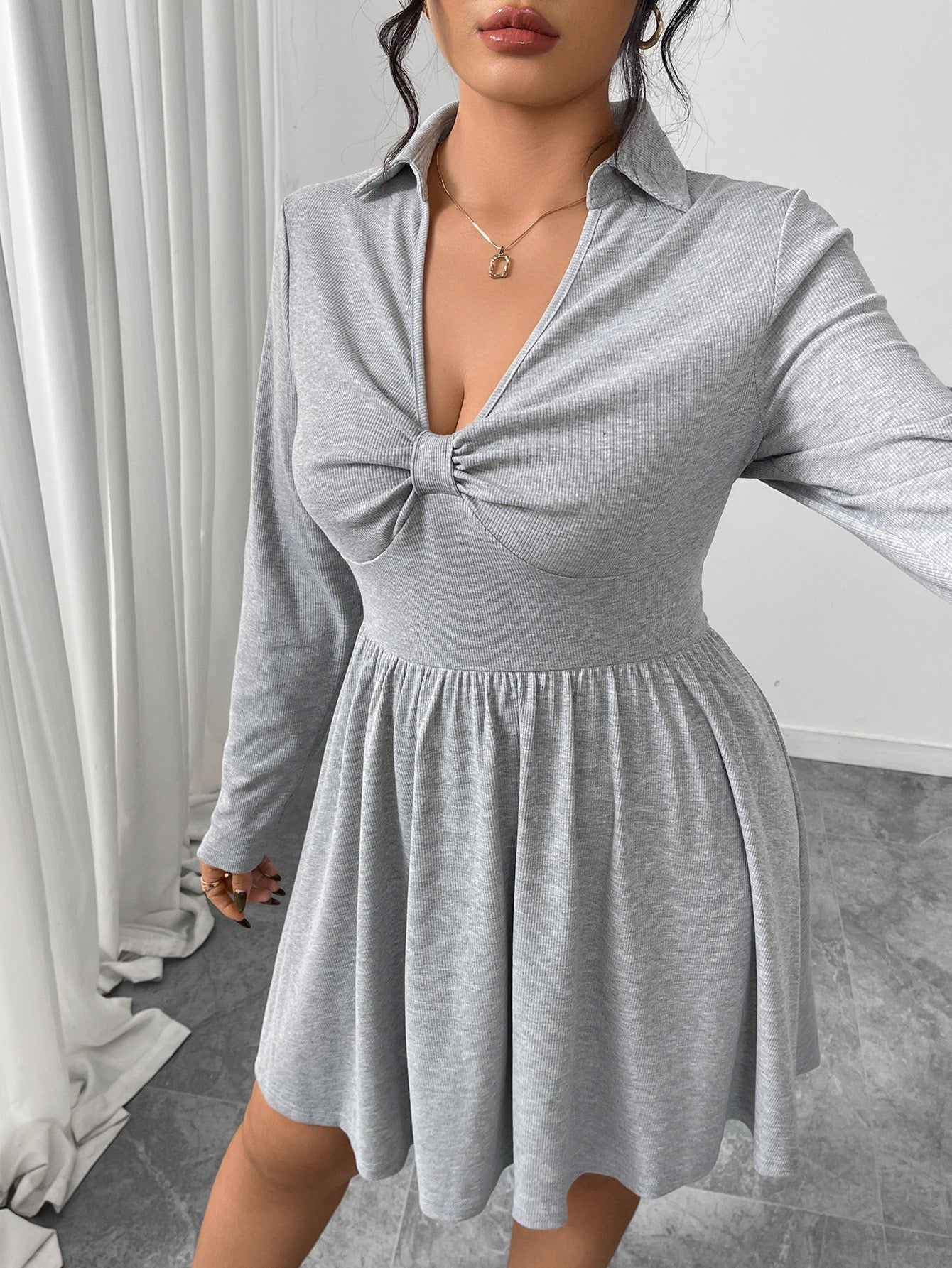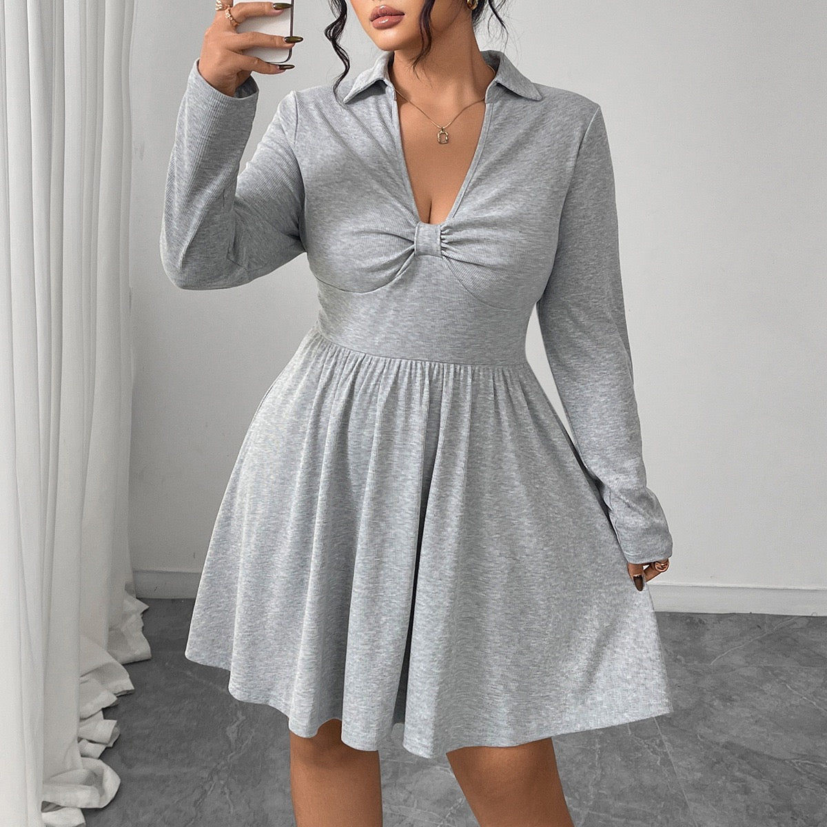Plus Size Dress with Defined Waist and Flared Shape