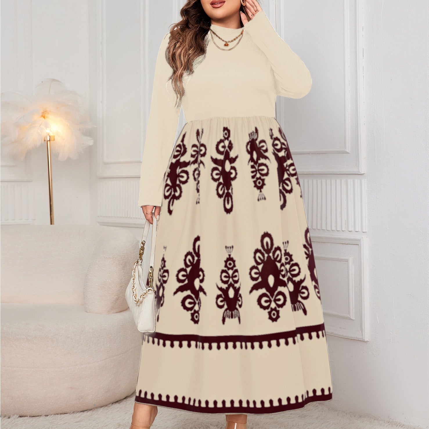 Plus Size Elegant Printed Long Sleeve Maxi Dress