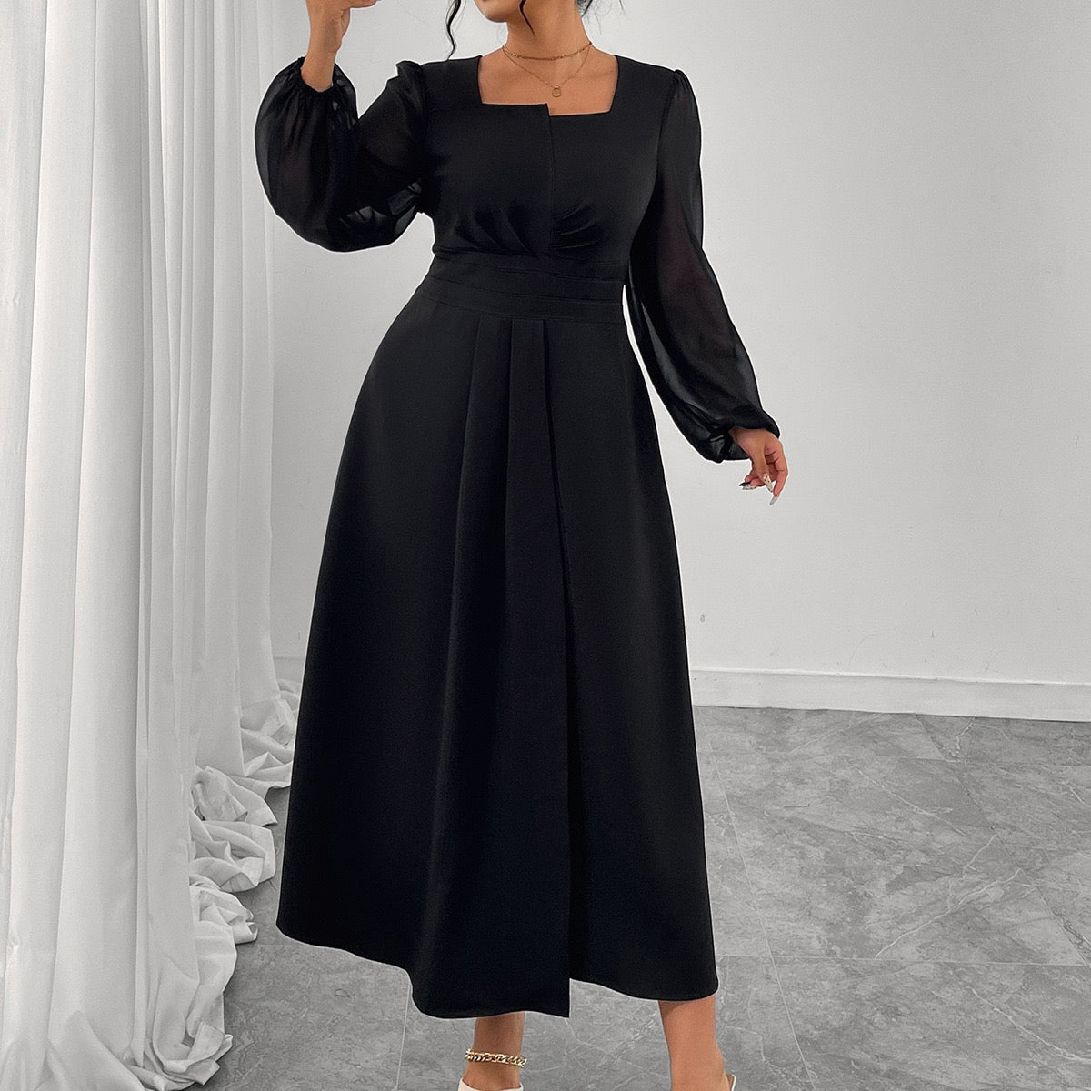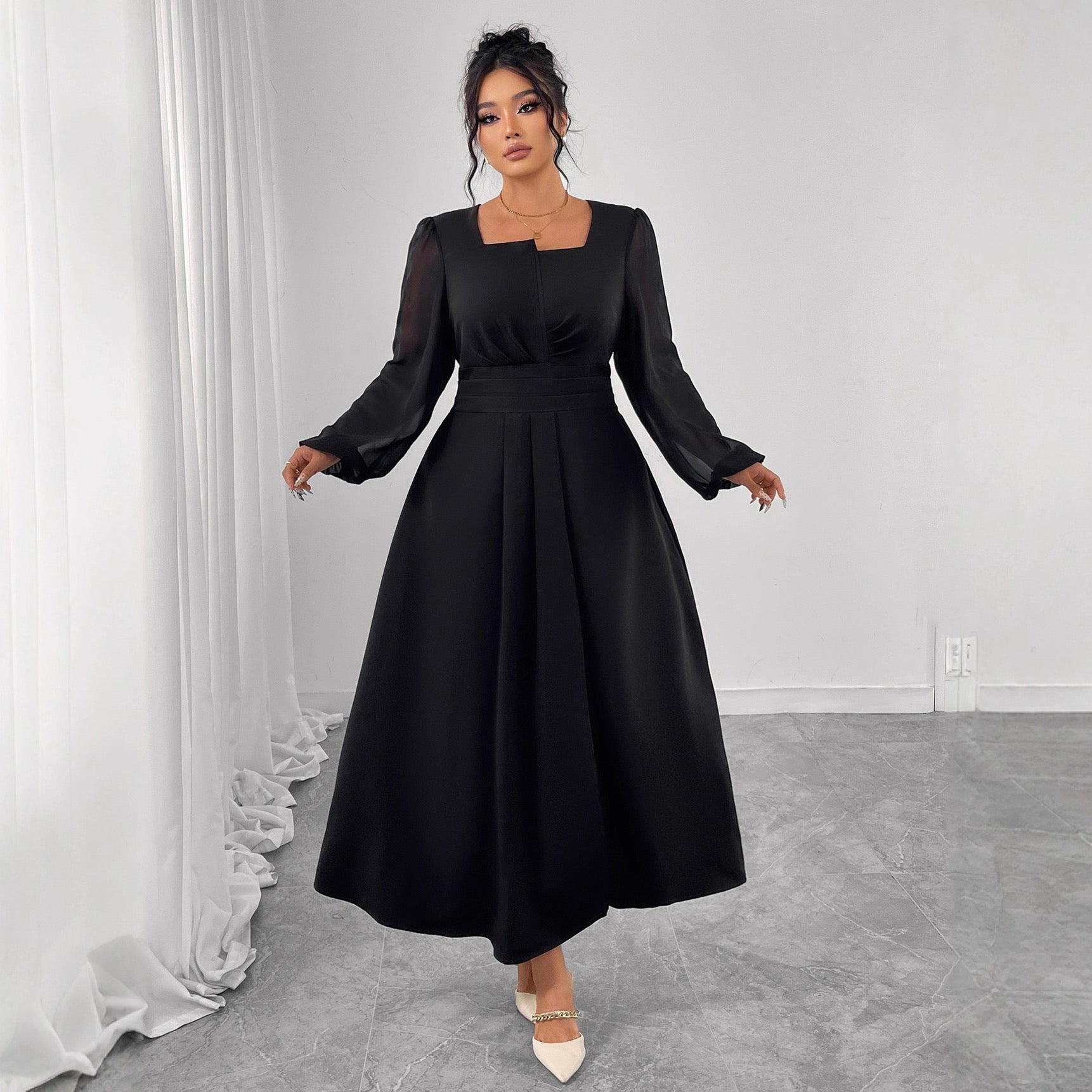 Plus Size Elegant Square Neck Long Sleeve Midi Dress