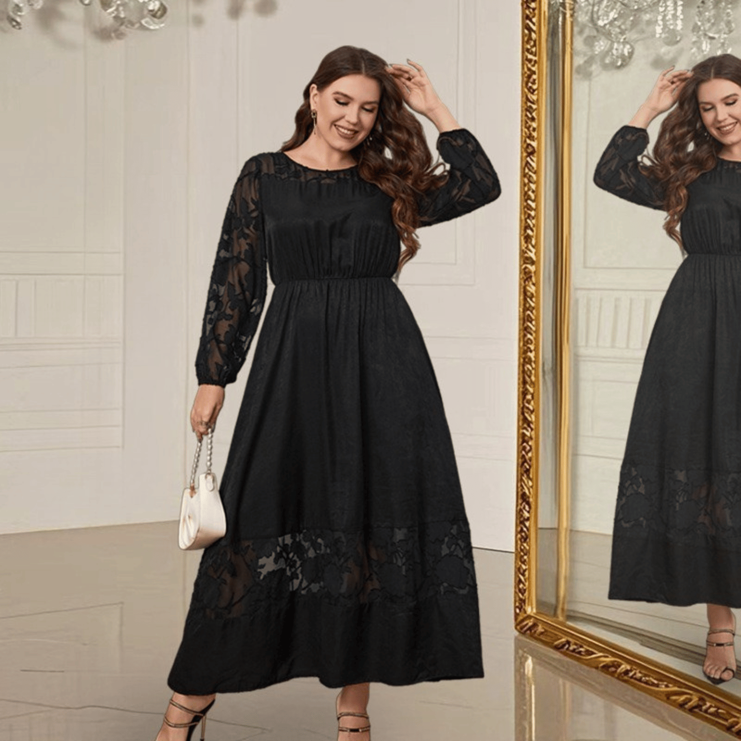 Plus Size Floral Lace Long Sleeve Maxi Dress