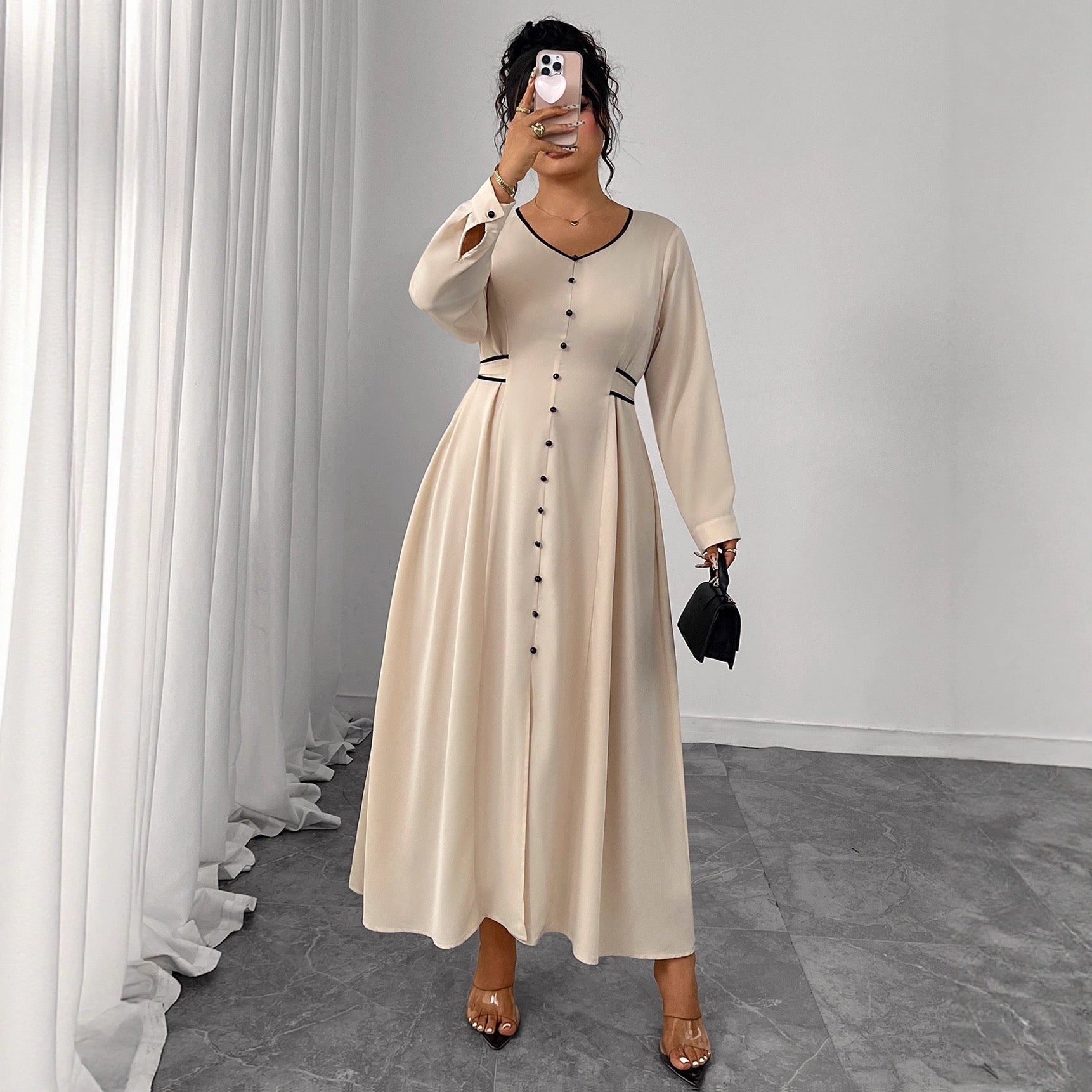 Plus Size Long Sleeve Maxi Dress with Button Detail and Shaped Waist