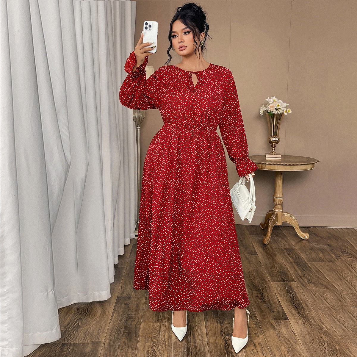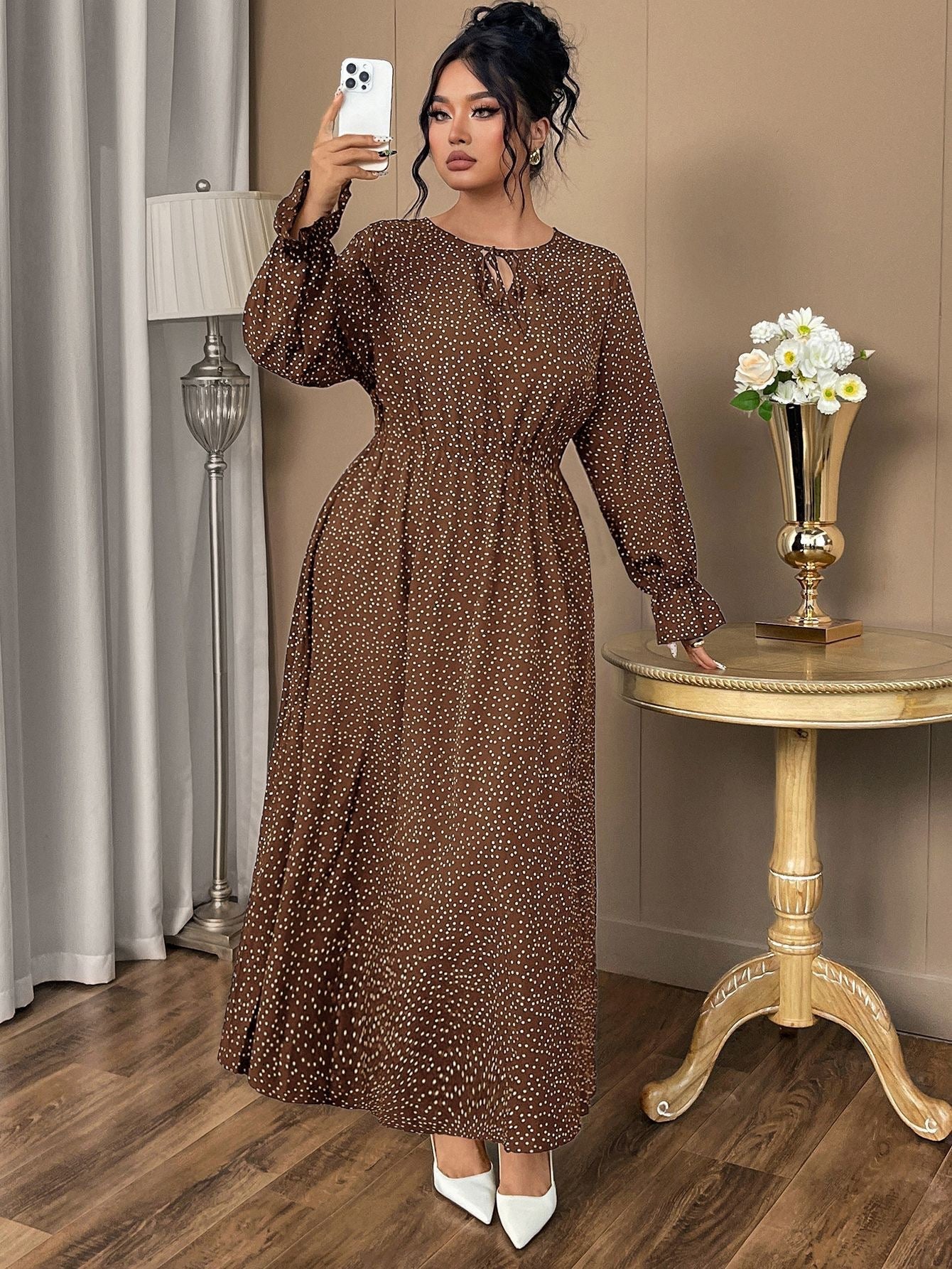 Plus Size Relaxed Polka Dot Maxi Dress with Adjustable Neckline